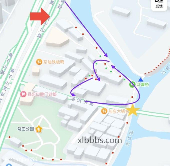 杭州勾庄公园心得及超详细攻略:以通信桥路为中点南北分界 建议从北边入口(红色箭头处)沿着如图路线(紫色箭头)游走 建议多走几次年轻的大致位置如图(绿点分布)lcp(红点分布)通信桥以南(黄色五...