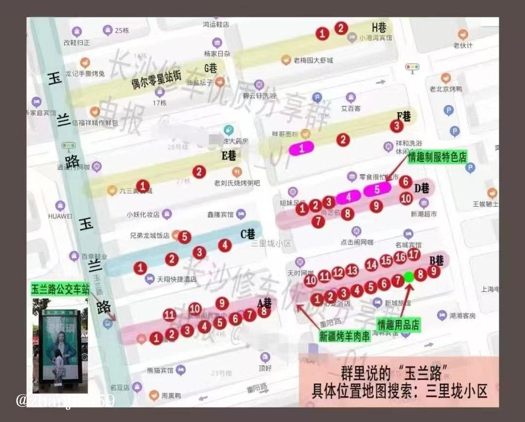 跟大家科普下,玉兰路不是单一一条路,说的是分为ABCDEF六个区域巷子的总称,妹子数量20-40人不等,各种风格种类的都有,乱花渐欲迷人眼,巷子里妹子站在一间间的铁门内,大家可以一路逛一路看,选择自己的心动女生,看中了不要犹豫(害怕机车),不要贪心(认为后面还有更好的),有时候你没选,别的狼友抢先了,可能就要等很久,这是我的真实经历,仅供大家参考。下面讲下具体的位置,首先导航皓月酒店或者三里垅小区,这两个位置都行,然后从皓月酒店这个口子进去,这是B巷(不强求必须从这里进),具体ABCDEF...